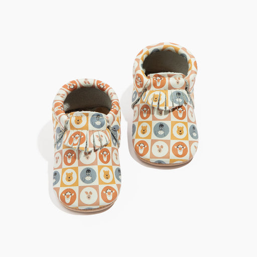 View full detailsHandmade genuine leather moccs for your little walker! Shoes that stay on their tiny feet. City Mocc Color Block Characters Pattern Weathered Bro...
