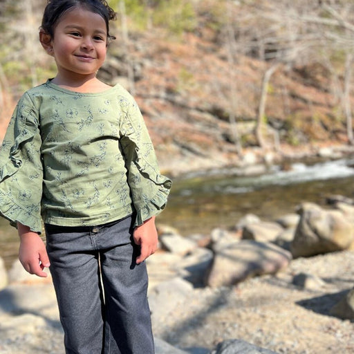 Get your little girl in on the cozy fashion trend with our Holiday inspired Ruffle Bamboo Terry Sweatshirt! The adorable ruffle details on the shou...