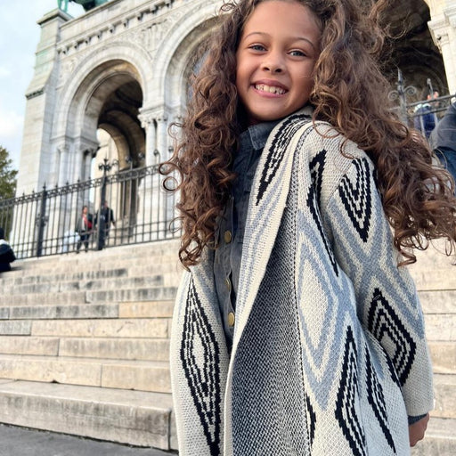 Bold, beautiful and so so cozy, this chunky shawl collar cardigan features a striking black and grey diamond intarsia. Best cardigan ever? We t...