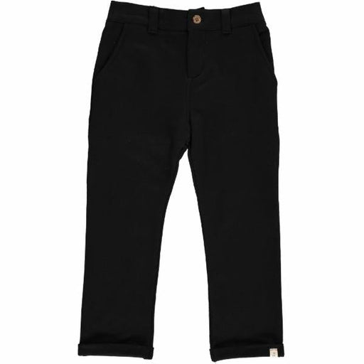 Versatile black jersey pants with adjustable waist by Me & Henry. Great for play, relaxing, or going out. So versatile!