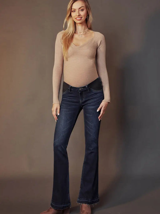 Maternity flare jeans featuring extra stretch denim which sculpts and shapes while adjusting to your changing body. Elastic panels at the waistband...