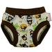 With an inner lining made with cotton velour, a hidden layer of super-absorbent microterry and PUL, these training pants will do the job of catching small accidents during the day.