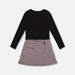 The Bi-Material Dress Black and Houndstooth is a chic statement piece with a clever layered look. This long sleeve dress pairs a brushed rib black top with a textured jacquard knit wrap skirt, complete with a large patch pocket in a classic houndstooth pattern. Soft, stretchy, and cozy, it blends comfort and style for festive outings or everyday flair.