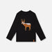 Our Organic Cotton T-Shirt Black With Deer brings a stylish twist to a winter classic. Made from soft organic cotton jersey, this long raglan sleeve top features a classic round neckline, and a textured geometric deer illustration in earthy tones for a modern, tactile look. It’s the perfect everyday piece for little boys who love nature and movement.