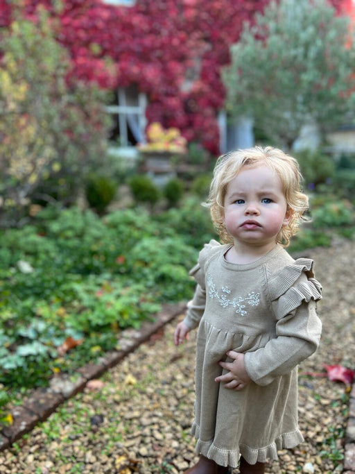 Add a pop of linen to your wardrobe with our whimsical Embroidered Dress. The linen color brings a touch of natural charm, while the embroidered wa...