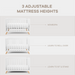 Toddler Crib that Grows with Your Baby: The Comfy Cubs newborn crib includes an adjustable mattress height that adapts as your little one develops, creating a secure and supportive sleep space from infancy through toddler years as they sit, stand, and explore.
