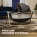 • Adjustable, removable half-canopy
