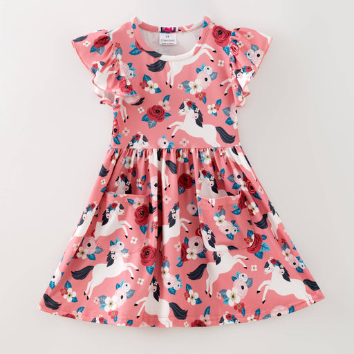 Let your little equestrian shine in this charming Ponies & Roses Flutter Sleeve Dress! Perfect for horse-loving girls, this delightful piece fe...