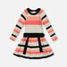 Bursting with personality, the Striped Knit Dress Beige Black And Pink is a cheerful essential for young girls. This long-sleeve sweater dress features raglan sleeves, a round neckline, and a flared skirt, all brought to life with multicolor horizontal stripes, soft colors and a soft ribbed knit texture. Made from a warm wool-blend knit and finished with a detachable black belt at the waist, it’s perfect for festive outings, school events, or cozy days indoors.