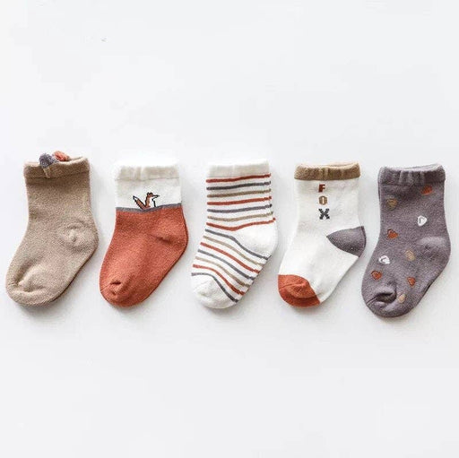Each pack comes with 5 pairs of socks! Dive into ultimate comfort with our Organic Cotton Sock Set featuring adorable fox characters, complete with...