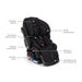 • Leg rest extends to provide up to 2” of additional legroom for forward-facing riders