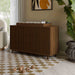 The timeless Pogo Tambour Assembled Dresser exudes modern elegance with its textured fluted tambour paneling, smooth, rounded edges, and elevated silhouette. Designed for the nursery but beautiful enough for use throughout the home, it features push to open smooth-gliding drawers, spacious side cabinets, included anti-tip kit for safety, and best-of-all, it arrives fully assembled, ready out of the box.