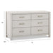 Complete your modern farmhouse nursery with the Hemsted 6-Drawer Dresser, featuring a premium texturized wood finish and elegant gold hardware that enhances the dresser's contemporary flair. Soft-closing, ball-bearing drawer glides make this dresser easy to use.