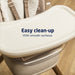 The sophisticated design gives a nod to the past with its timeless color palette, intentionally selected materials, and sleek style. The seamless, clear design of the seat features beautiful, embedded caning. And the smooth surfaces and thoughtfully molded design leave no crevices for messes to hide in, making clean-ups swift and seamless.