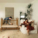 Our best-selling Crawford Glider has been reimagined to fit more than one with its extra wide seat – perfect for nursing twins or cuddling up with your toddler. This glider offers a modern take on traditional slipcover style and brings nursery comfort to a new level with its plush pillowback design, added lumbar pillow, and 30” wide seat. Its smooth, back-and-forth gliding motion helps you rock your baby to sleep with ease, while the convenient swivel creates an inviting repose for both you and your baby.