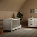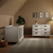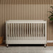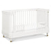 Ease into contemporary style with the Tanner 3-in-1 Crib. Featuring a gently curved silhouette with solid rounded side panels and elegant bronze metal feet accents, the Tanner is an effortlessly transitional piece for the home. Crib converts to a toddler bed and daybed, and fits any standard full-size crib mattress. Available in a Warm White finish.