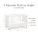 - GROWS WITH BABY: Our cribs have 4 adjustable mattress positions to help transition as your baby grows and develops from newborn to toddler. Easily lower the mattress position as your baby begins to sit, pull up, and stand.