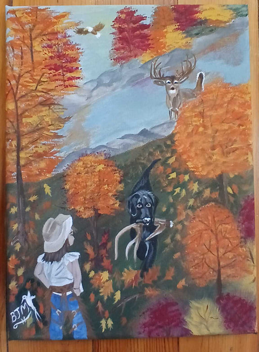 Add some bark to your walls with Come Brett One Of Kind Painting. This unique black lab painting set in a fall forest is a fetching addition to any...