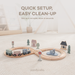 Multi-Wood Construction for Safety & Durability: Our wooden train sets are made from a mix of beech wood, pine, MDF, and plywood for strength and smooth finishes. This wood train set is designed to withstand active toddler use while staying safe for tiny hands and curious minds.