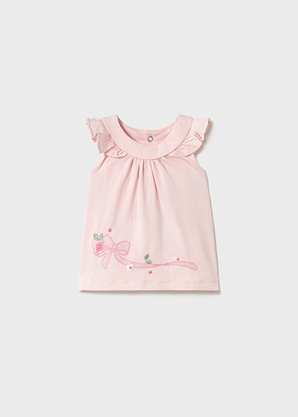 Sleeveless dress for newborn. Round neck with ruffle. Button closure at the back for easy dressing.