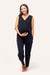 Our nursing-friendly jumpsuit is our must have style of the season. Made with a hidden snap placket that allows for easy access for nursing babe, this cozy jumpsuit also looks cute with a bump. Back 'V' detail and side pockets for stashing stray binkies and midnight snacks.