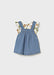 Short sleeve dress for newborn with ruffle details. Layered with a super soft denim overall style dress.
