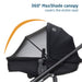 - 360° MaxShade canopy provides UPF 50 protection and unzips to extend the mesh privacy panel, which covers the entire seat