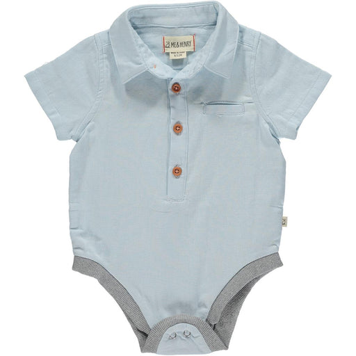 Expertly crafted, this Pale Blue Short Sleeve Helford Bodysuit is made of 100% cotton for ultimate softness and comfort. The woven onesie design ad...
