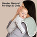 Sized at 21" x 10", these large burp cloths are wide enough to cover your shoulders and the unique figure-8 design prevents these spit up rags from slipping. With over 10 designs available, our baby burp cloths comes in unisex gender neutral designs, baby boy burp cloths designs or baby girl burp cloths designs.