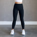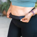 These 7/8th length leggings have a high rise waistband with our patent pending signature silicone grips that keep your leggings up on your waist during running, burpees or while pregnant!