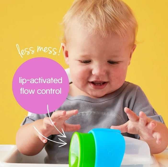 Designed with intention: Wide profile handles are easy for little hands to grip for self-led drinking, and offer two-mode functions for use at home and on the go. Twist handles down to expose the silicone rim for easy drinking, then twist the handles up to lock and seal for no leaks in bags or prams, plus the silicone rim stays clean and hygienic.