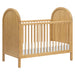 The Bondi 3-in-1 Convertible Crib celebrates boho-inspired design and natural materials with its warm wood tone, playfully arched side panels, and curved feet. The Bondi is designed to grow with your babe using an included toddler bed conversion rail and is screened for harmful chemical emissions to ensure it meets GREENGUARD GOLD Certification.