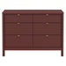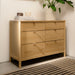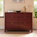 • BOHO-INSPIRED AESTHETIC: The Bondi 6-Drawer Dresser celebrates boho-inspired design with its warm wood tone, rounded posts and tonal vegan leather drawer pulls. Plus, our hidden hardware construction eliminates visible screws on the furniture exterior for a polished, clean look.