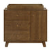 - VERSATILE MODERN DESIGN: Features three spacious drawers, clever side cabinet storage, and turned-out feet for a modern look, plus, it easily converts into a changer with the addition of a changing tray (#M0219 sold separately).