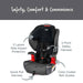 Quickly adjust the 9-position harness & headrest using just one hand for the proper fit as your child grows. Once they’re ready to use the seat belt, the 5-point harness tucks away, transitioning to a belt-positioning booster. Color-coded guides help you route the seat belt through the right paths. Choose from plenty of fun colors to match your child’s unique personality.