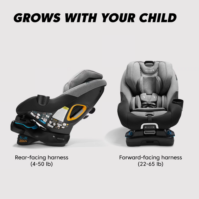 • Convertible car seat transitions from rear-facing harness (4-50 lb) to forward-facing harness (22-65 lb) to grow with your child