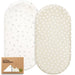 Measuring 33" x 17" (H: up to 4"), these bassinet mattress sheets fit most bassinet mattress shapes. They are easy to put on and come with a SnugFit band to ensure that baby bassinet sheets stay securely in place, providing a safe and cozy slumber.