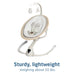 Its 360⁰ rotation helps you maintain eye contact with your baby – because we know you can never take your eyes off of them. From the living room to the home office and back, you can easily take Cassia with you. Not only does it weigh about 10 pounds – less than the family cat – it also has a space-saving frame. And a stylish one at that.