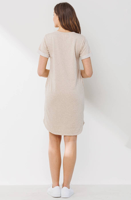 Oatmeal Crew Neck Maternity T-Shirt Dress