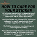 Perfect for laptops, water bottles, planners, coolers, tumblers, and more! Each decal is printed with high-quality ink on heavy-duty vinyl. They are scratch-proof and water-resistant. Please note: the clear vinyl option has a less durable adhesive, so extra care is recommended to extend its lifespan. All graphics are printed at 1200x1200 high resolution for exceptional clarity. Stickers measure 3 inches on the longest side unless otherwise noted (some listings offer size options). Every order is guaranteed one poly sleeve and card backer. If you need each sticker packaged individually, just let me know when placing your order—I’m happy to accommodate. Hand wash only. Not dishwasher-safe and should not be soaked. Tips & Tricks: Stickers perform best on clean, dry, smooth surfaces. We only guarantee adhesion on smooth surfaces—textured surfaces are not recommended. For best results, wipe the surface with alcohol and allow it to dry before applying. After placing the sticker, rub it firmly a few times to help